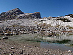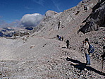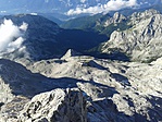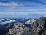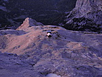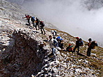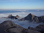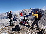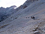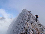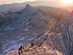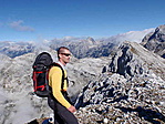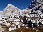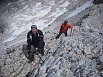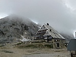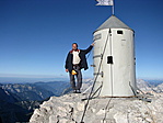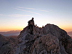 Itt vagyok tehát, a hegy, Szlovénia legmagasabb csúcsa, a Triglav tövében és megint felfelé készülődöm. Node, lássuk csak mi az, ami elengedhetetlen most a kitűzött cél eléréséhez. Mint mindig, most is igyekszem minimálisra szorítani a készleteimet és csak a feltétlen szükséges felszerelést felcipelni. 2 liter víz, vajon elég lesz? Talán. Fent van egy menedékház, drágán mérik ugyan a jót, de minden kapható. Olvadó hó van feljebb mindenhol, ha más nem adatik még abból is ihatok kicsit. A maradék szendvicsem már elég állott, nincs humorom elmajszolni, lent marad. Feljön viszont 2 szelet csoki és egy alma. Elég lesz? Talán, de lásd feljebb a vészforgatókönyvet. Szükségem lesz hágóvasra, ez mindenképp bekerül a kis hátizsákomba, mivel fent még jelentős hóra számítunk. Napszemüveg, szintén a hó miatt és egy hosszú ujjú aláöltözet, ha rosszra fordulna az idő, mert én olyan óvatos vagyok, hogy minden eshetőségre felkészülök. Miután így felszerelkezem és az óra is elüti a hatot, indulhatunk is, a végtelennek tetsző Krma völgyön felfelé, ezúttal ketten, Ottóval. A Vrata völgyből vezető két út közül az egyik hivatalosan le van zárva, a másik csak szimplán járhatatlan, így marad ez a megközelítés, de nem is baj, legalább tartogat valami újdonságot a hegy. Szelíden emelkedő ösvényen haladunk most még lombhullató erdőben, aztán hirtelen változik az út jellege és az itt-ott hó vagy leomlott szikla által letarolt törpefenyves kezd dominálni. Az emelkedő szelídsége is múlóban van már, cikk-cakkozni kezdünk és néhol 1-1 hófolt is az utunkba kerül, de még csak mutatóba, kvázi előrevetítve mi vár ránk a felsőbb régiókban. Nem éppen rohamtempóban, de azért nem is szüttyögve érjük el a 2000 méter körüli magasságot, ahol már nem kell bajlódnunk az út követésével, mivel mindent vastag hótakaró borít, sajnos a turistajelzéseket is beleértve. No nem baj, nyomok vannak, és itt a GPS is, e két mankónk segítségével nem lehet gond, kivéve ha összeakadnak. Összeakadnak... A nyomok teljesen eltérnek az égi jelek által meghatározott optimális iránytól, így dönteni kell merre tovább. Elhagyjuk a nyomokat, nincs rájuk szükségünk, van nekünk is lábunk, majd taposunk magunknak újakat. Itt már nem túl szelíd a hegy, nincs szerpentinezés, csak megyünk föl egyenesen, amerre jónak véljük. Meglehetősen meredek, így 2 percenként megállunk lihegni pár másodpercre, pulzusunkat visszahelyezzük alapállásba, majd uzsgyi tovább. Kitartó kaptatásunk kellős közepén kibukkan keservesen kívánt kolosszális kuckónk. Oké, oké, nem kuckó, hanem egy baszott nagy ház, ami most még kísértetiesen kihalt. A szomszédos meteorológiai állomás személyzetén kívül még három helyi foglal helyet, azokon a padokon, ahol a nyári szezonban egy gombostűt sem lehet leejteni. Szerencsére a személyzet már elég jól beindította az üzletet, így gond nélkül kaphatok egy kissé drága és kissé meleg, de roppant szükséges sört. Szükséges, mégpedig két okból. Az első, hogy spóroljak a vízzel, amit hoztam, már a fele is elfogyott. A második, hogy némi bátorságot erőltessek magamra, mivel megláttam, merre vezet tovább az "utunk". A ház alatti pici nyeregből egy roppant meredeknek tűnő hófolt terül el a via ferrata beszállásáig. A jégcsákányt persze a kocsiban hagytam, amikor rájöttem, hogy nem tudom felkötni a kis hátizsákomra. Az alkohol ad némi bátorságot, már-már előremozdítva a helyzetet, a szomszéd asztalnál ülő helyiek viszont azt mondják, ők meg sem próbálják elérni a csúcsot, mert "trükkös" az út. Most van az a helyzet, hogy azonnali indulást javaslok, így nincs időm a felesleges aggódásra, hisz úgyis tudom, hogy ha már idáig feljöttem, biztosan nem futamodom meg a célegyenesben. Lesétálunk a nyeregbe, ahol könnyen fel tudjuk mérni a hótakaró vastagságát egy útjelző oszlop és a rajta lévő tábla segítségével, aminek éppen csak a teteje látszik. Amint beérünk a meredek fal alá, már nem tűnik olyan meredeknek, persze motoszkál a fejemben, hogy oké, felfelé nem lesz gond, de mi lesz lefelé?! Úgy döntök, hogy ezen a problémán ráérek rágódni, amikor aktuálissá válik. Lassan, de biztosan, lépésről lépésre emelkedünk. Így, hogy benne vagyunk már nem is olyan vészes a dolog. Néhány méter után elérjük a drótkötelet, ami ad némi biztonságérzetet zaklatott lelkemnek. Innét úgy tűnik már csupasz a szikla, a nap nem kímélte ezt a kopár, kitett kolosszust, többé-kevésbé megfosztotta hófehér ékszereitől. A hágóvasat nem veszem le, gyakorlom inkább a sziklán való használatát, nomeg itt-ott még van egy igazgyöngy hófolt, ahol akár hasznát vehetem. Még olyan 300 méter szintemelkedés van hátra, nem sok, de eléggé kifáradtam, így lassan kúszunk csak fölfelé. Egyszer aztán kibukkan a már ismert kis bódé, szégyenlős a szentem, éppen, hogy csak a feje búbját hajlandó megmutatni nekünk. Néhány méter még és ismét itt állhatok, belegondolni is furcsa, de 16 év elteltével. A máskor emberhangyáktól nyüzsgő gerincen végigpásztázva most senkit sem látni, minden bizonnyal ma, mi vagyunk az elsők és utolsók egyben a csúcson. A parkolóból hat és fél órája indultunk csupán, mégis hosszúnak tűnt az út idáig. Még maradt egy csokim, ami annyira megolvadt, hogy nem kibontom, hanem lyukat tépek rá és kinyomom, mintha fogkrém volna. Néhány fotó majd indulunk is lefelé, mert elég komisz felhő kerülget folyamatosan. Szerencsére mindig kicsit odébb vándorol, keres minket, de nem talál. Lefelé is hágóvasban bukdácsolok a sziklákon, de már kicsit talán ügyesebben, mint egy órája. A ház fölötti meredek hófalat elérve ism