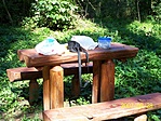 A forrás melletti tűzrakóhelynél éppen sütögettek. Szerencsére az autójuk pont eltakart engem a ládikánál. Sietve logoltam, majd megnéztem a forrást is. Fura a foglalása, van is meg nincs is.