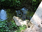 A GPS olyan utcába irányított, hogy ott megközelíthetetlen volt a forrás. Végül lentről közelítettünk, sikerrel. A ládához nagyon közel tudtunk megállni. A mohás fal aljából könnyen előkerült a doboz. A forrás(ok)-ból nem jött akkor víz, mikor ott jártunk. Készítettünk pár fotót, és elhagytuk ezt a szép környezetet.