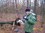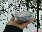 Kisebb tötökbálinti rodeozás után a Nárcisz utcai megközelítést választottuk. Éppen parkolni készültünk, mikor Zergi-ék húztak el mellettünk dolguk végeztével. Hosszabb sétára számítottunk, de így is szép volt a zúzmarás erdő, a rejtés ötletes.