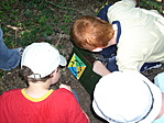 A sorompónál hagytuk a kocsit, és már ott gyanús volt, hogy GC matricás autó parkolt előttünk. Felbaktattunk a hegyre, és amikor egy erőt gyűjtő (falatozó) négyfős társaság (nagypapa, nagymama, 2 kisunoka) mellett befordultunk volna ládairányba, a kisfiú megállított bennünket egy "Ti is ládát kerestek?" kérdéssel. Kiderült, hogy szipeti családjába botlottunk, akik a nagy erőgyűjtés után éppen készültek a láda megkeresésére. Élvezet volt a két kis geo-manó lelkesedését látni, ahogy kerestek, aztán meg nagy komolyan lebonyolították az ajándékcserét. Lefelé együtt ballagtunk vissza az autókig, és jót beszélgettünk közben.