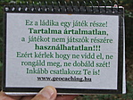 A ládában nem találtunk naplót, jelszóval. A láda egyik sarka is törött, tehát nem vízálló a láda. Találtunk benne egy ajándékot melynek magassága több volt mint a láda magassága! Valószínűleg a tető rányomásával emiatt sérült meg a láda. Mindenesetre karbantartás esedékes!