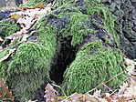 Az első szuszogós szakasz után könnyű séta, csodaszép őszi környezetben. A piros sáv igen forgalmas. A láda nem adta könnyen magát, kicsit bolyongtam az erdőben, mire rátaláltam. Ráadásul, egyesületi dobozt kerestem, egy kidőlt fánál, ehhez képest egy zöld tetejű, alul kirágott dobozt találtam egy fa tövében, amiben egy szál fecni volt csak, logbook sehol... Ezért kérem a karbantartást.