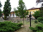 Először a parkban levő ládát kerestem meg. A rejtek elég mesterkéltnek tűnik, nehogy a közeli tűzrakóhely vendégei közül valaki felfedezze. Logolás közben felfigyelt rám három kutya (vizsla) a rejtekhely feletti kerítés mögül és hangos ugatással fejezték ki nemtetszésüket.. Úgy látom , hogy ki tudnak jönni az udvarból, úgyhogy jó lesz velük vigyázni. A 2. pontot a parkon átvágva közelítettem meg. A szálloda szépen fel van újitva, de a kopjafa környékén levő épületek siralmasan néznek ki. A jelszótól kicsit többet vártam...