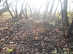 A fák közt haladva, egyszercsak nagy csörtetésre lettünk figyelmesek: hát szinte az orrunk előtt (na jó, kb. 10-15 m-re tőlünk) szaladt el egy hatalmas vadkan! Pár lépéssel tovább haladva megláttuk fekhelyét, amit maga készített magának: egy nagyobb mélyedést az egyik fa tövében. Itt szundikálhatott szegény (talán makkal álmodott?), amikor felvertük álmából, és nyilván úgy megrettent, hogy egyből menekülőre fogta. Azóta már biztos vagy visszament, vagy talált másik fekhelyet...