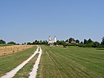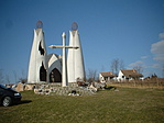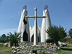Kicsit elhagyatva, a faluszélen. Úgy látszik nem vették igazán birtokba a helyiek. A templom előtt füvet nyírtak, mi pedig pont a déli harangszóra logoltunk.