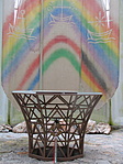Amint megpillantottam a fotókat, tüstént sejtettem, hogy Csete György lehetett a tervező, mert ismerem az orfűi tulipános építményt, a Vízfő forrás mellett, melyet poi-ként fel is tettem (azonban most hiába keresem, szőrén-szálán eltűnt), és könnyen azonosíthatóak az itt is fellelhető organikus motívumok.