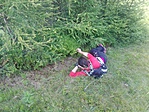 Bert-Rinesch klettersteig felé majdnem útba esett, így begyűjtöttük. Nem igazán értem miért van ilyen kevés megtalálása ennek a doboznak. Az ajánlott parkolóból 40 perc séta alatt fölértünk főleg a sípályákon haladva, megtéve olyan 450 m szintemelkedést. A doboz könnyen meglett, de a fenyőbe behatolni kissé macerás. Lefelé már kicsit csepergett az eső így a vizes, füves sípályák helyett inkább körbe mentünk a turistaúton ami minimálisan hosszabb, de fele olyan meredek.