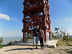 jelzésen. E turistaút ezen szakasza egyúttal tanösvény is, bár a jelenlegi állapotában eléggé elhanyagolt, akárcsak maga a kilátó. Az erdő a közelmúlt viharainak nyomai viseli: rengeteg a kidőlt száraz fenyő - azonban a fák még fekve is kötelességtudóan mutatták az útjelzést. Utunk során megtudhattuk, hogy a pelék csipszet esznek, és ásványvizet isznak, s ráadásul nem átallják a csomagolást széthajigálni. Ez ugyan nincs kiírva, de nem lehet másként, mert egy természetkedvelő turista nem tenne ilyet...