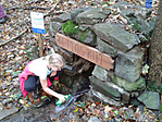 jelzésre, mely egy szép erdei szintúton a forráshoz vezet minket." A jelezett út a kidőlt fák miatt gyakorlatilag megszűnt. A forrás környékén lehet csak nyomokban felfedezni belőle 10 métert. Maga a rejtés könnyen adja magát, ha már elérted a forrást.