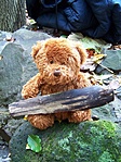 -ön mintegy 300 m-t haladva viszont olyan terepviszonyok fogadtak, hogy a ládától már csak 120 m-re fel kellett adjuk. A turistaút eltűnt, helyét a hegyoldalból kidőlt és egymásra halmozódott fák, ágak áthatolhatatlan tömege vette át ~ 80-100 m szélességben és több száz méter hosszban.