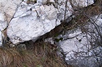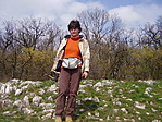 Mai 4., egyben utolsó "Snake" ládám. És ez volt a legjobb! Én az ilyen helyeket szeretem. A faluban nem leltem sem a zöld+, sem a sárga+ jelzést, úgyhogy addig mentem autóval, ameddig a műszer szerint a ládát a lehető legjobban megközelítettem. Így aztán egy elég szemetes, akácos, hétvégi bodegás környezetben hagytam az autót, a kék jelzéshez közel. Kék után mentem zöldön, majd találkoztam sárga kereszttel is, de jobbára GPS által vezérelve, felülről közelítettem a ládára. A koordináták jók, a láda egyből meglett. Lefelé toronyiránt a sziklákon jöttem, majd egy kőlavina nyomvonalán lejutottam a rétre. Szuper hely!