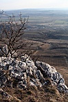 A N 47° 43,482' E 18° 48,060' 478 m [GCsas+fotó] pontról szép kilátás nyílik, főleg a Gerecse felé. A szikla szélére kiállva látszik a Bp-i Széchenyi-hegy is. A szikla alatt kellemes 1-2 személyes bivakhely is van, bal odlaról lehet lejutni. A doboz is állomásozott ezen a helyen, de nem volt hosszú életű, ellopták. Az új rejtek ettől uszkve 50 méterre van, itt tán nem lesz annyira szem előtt.