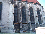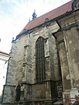 A háromhajós bazilikát egy korábbi templom helyén 1300 körül kezdték el építeni gótikus stílusban. Tornya eredetileg a várhoz tartozó őrtoronyként is szolgált, de ezt a szerepét később elvesztette. Az építkezés, bővítés folyamatosan tartott évszázadokig, közben már reneszánsz elemekkel is bővült a templom. Felszentelésére csak 1402-ben került sor. Az 1400-as években készült el az északi falhoz csatlakozó Szent Anna-kápolna, majd 1526-ban épült meg a déli előcsarnok. 1620-ban Bethlen Gábor a templomot az evangélikusoknak adta, de ők csak nagyon rövid ideig használhatták. Az 1730-as években épült a hozzá csatlakozó Szent János-kápolna, a dóm 1895-re nyerte el végleges alakját. Tornya ma neogótikus stílusú, igen magas: 85 méteres! Tetején a