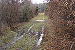 -on, aztán - ahogy kell - túlmentünk a letérésen. Könnyebbségül a térkép nélküli keresőknek, itt kell balra bevenni magunkat a sűrű erdőbe: N47 40.019' E16 30.153' Innen kb. 100m bozótharc jön, majd a "híd". Idézőjelben, mert a foghíjas deszkákat teljesen benőtte valami zöld, úgyhogy egyáltalán nem látszik, hova érdemes lépni... Mi inkább kerültünk egy kicsit és átugrottuk a patakot - ez biztonságosabb volt!