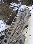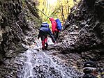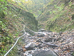 A jelzett út tulajdonképpen a patakmederben van, ezért némi vízre készüljetek! Hogy mennyire, az függ az évszaktól: nyáron nyilván kevesebb, olvadás után több lé csordogál. A multi ezért kapta ezt a nehézségi fokot; nyáron, jó időben a sorállás aggaszt majd; télen, eső után pedig tényleg a kaland! Fontos, hogy ahol a kanyon kétfelé válik, ott te jobbra tarts!! A száraz ág egyébként is le van zárva.
