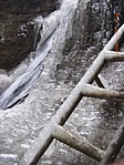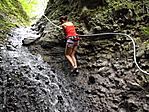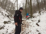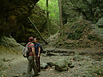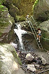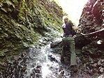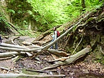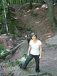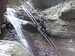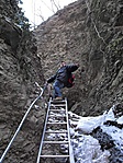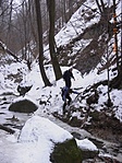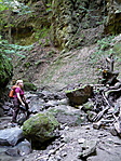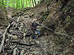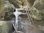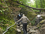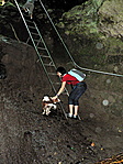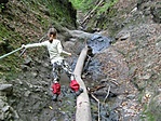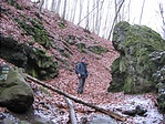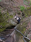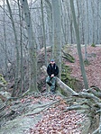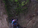 Dömös környéki kutyás túrán a GCSFV után a szakadék aljától indulva fölfelé próbáltuk bejárni a szurdokot, egészen addig, míg a felszerelt létra miatt egy helyen a kutyát nem tudtam felvinni (ha az nincs ott, simán fel tudom segíteni...), így visszafordultunk és jóval lejjebb felmásztunk a sárga felé és úgy mentünk a felső végpontig.