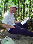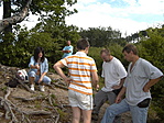 Ezek után a harmadik ládára már csak 5-en startoltunk rá. Rohanás fel a hegyre a hőségben, majd a leírást és a fényképeket követve be a sisnyásba. Háromnegyed óra fetrengés öt embernek a szúrós bokrok alján - igazán szép áldozat! Ahelyett, hogy a csodálatos Dunakanyar kilátásban gyönyörködnénk... Eredmény: a GPS legalább 10-szer egyértelműen egy kőtömbre mutat, felforgatva sincs ott a láda!