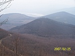 nagysodrású dunaszakasz, és a Börzsöny, ahogyan "kiemelkedik" a vízből.