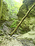 Ami a multit illeti: ez most pont olyan volt, amiért kiráz a hideg a rejtett pontos ládáktól. Az első két pont kb. bemutatja a szurdokot, egy alul, egy felül, lehetne ládát rejteni akár mindkét ponthoz, van rá elég hely a nyüzsgéstől távol. A harmadik pontnak viszont az égvilágon semmi köze sincs a szakadékhoz, ellenben jó egy kilométerre van a második ponttól, kellemes kis szintemelkedéssel. Ami alapból nem baj, ha az ember arra akar tovább menni. De én speciel nagyon nem arra akartam, így nekem ez teljesen felesleges és tervezhetetlen(!!!) idő- és energiaveszteség volt. Azt is elhiszem, hogy a harmadik pontról a rejtéskor, húsz évvel ezelőtt remek kilátás volt, most viszont nincs semmi, mivel megnőtt az erdő. Lásd a logfotót. Így duplán felesleges szívás volt a kitérő - a semmiért pocsékoltam az időmet.