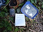 A láda a helyén volt, de a füzet a jelszóval hiányzik belőle. A horgászok érdeklődtek, hova megyünk, de megoldottuk a helyzetet.