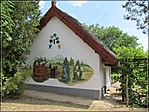 Érdekesek ezek a nádfedeles házak, melyek közül sokra "rászállott a cinege", azaz beszakadt a tetejük. Vannak olyanok, mint a Törpikék házai. Hangulatosak a présházak fehér falán elhelyezett festmények is. Jövetben egy ilyen ház előtt álló terjedelmes fa által nyújtott árnyékban telepedtünk le, hogy elfogyasszuk az ebédünket. Kár lett volna kihagyni ezt a különleges látványosságot!