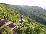 Pedig jó lett volna itt többet időznöm, mert korábban csak egyszer, 1989 júliusában jártam itt. De a narancs veszélyjelzés és a D felől hallatszódó égdörgés miatt inkább menekülőre fogtam, és igyekeztem a legrövidebb úton lejutni a hegyről a legközelebbi lakott helyre. (Végül a Zsongorkőnél ért utol a vihar, de aztán, bár bőrig áztam esőkabát alatt is, sikerült épségben lekecmeregnem a K3 kitett részein majd bebandukolnom az esőben is szép permi vöröshomokkő borítású úton Cserkútra...)