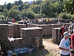 Nem tudom miért kell minden ilyen építményt visszabontani, köveit elhordozgatni... A tisztáson lévő másik két építmény közül a templom féleség - elvárhatóan - sokkal jobb állapotú, mint a könnyűszerkezetű házikó. Biztosan nem bírnak vele a vandálok.