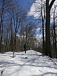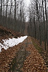 Szép kora délutáni időben Lászlótanya felől mentem fel az OKT-n. Egy lélek sem járt arra (hóban nem voltak lábnyomok). 830 méter felett még elég sok hó van, alatta semmi. A "parkoló"-tól 2870 méter az út, s persze vissza is, csak könnyebb, mert oda szinte végig emelkedik.