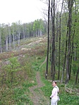 Most a Hajagost megkerülő, majd a határvonalon haladó kék jelzést követtük (ami mellett többhelyütt éppen virágzik a védett farkasboroszlán). Egész úton senkivel nem találkoztunk, odafelé még egész jól látható úton, napnyugta-közeli időben mentünk. Nem túl megerőltető séta egyébként, bár folyamatosan emelkedik.