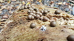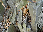 Miután elindultunk a Drahosi-rétről, továbbra is változatos erdőkben és terepeken jártunk. Már ritkábban álltunk meg egy-egy gombát fotózni; inkább csak azok miatt, amilyeneket még nem láttunk a nap folyamán. Az egyik csomópont után kicsivel (ahol a Z- jelzés 4 felé megy), találkozunk Sceléékkel. A nagy öröködés sajnos nem tarthatott sokáig, mert mindkét csapatnak még bőven volt hátra kilométer a napi eltervezettből. A terep itt már némileg változatosabb volt, mint eddig. Érintettünk egy kishatárátkelőt, ami után ismét egy brutál meredek emelkedő következett, mely során érintettük Magyarország ténylegesen legészakibb pontját. Itt egy sziklás csúcsra (Skarošská vyhliadka) is kiálltunk, ahonnan jó kilátásunk nyílt a környékre. Ide mondjuk el tudnék képzelni egy új ládát, vagy a már sok éve itt lévő com-osat "magyarítanám". Sokkal több értelmét látnám, mint random horhosokba tett ládáknak. Ahogy közeledtünk a hegység hazai legmagasabb pontja felé, úgy lett egyre misztikusabb az erdő a leszálló köd miatt. Van már vagy 10 éve annak, hogy utoljára itt jártam. Akkor egy fél napot pontőrködtünk sátorban egy teljesítménytúrán. Jól néznek ki a csúcsgúlától a láda felé vezető gerincen a fura alakú, sziklák. Olyanok, mintha egy dinoszaurusz pikkelyei lennének. A ládát kicsit keresnünk kellett, de végül megadta magát és folytathattuk utunkat Macekkel Pusztafaluba.