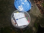 Meglett. Csak a nagyobbikkal, a kisebbik a csúcson maradt lustulni. A ládában minden vizes, ennek ellenére egészen ép (nincs szétmállva, szétrohadva semmi). Igyekeztem úgy visszaárni/visszahelyezni, hogy ne folyjon bele semmi.