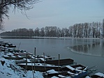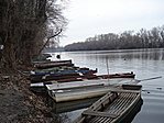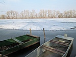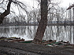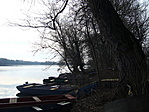 Megtaláltam, köszönöm a rejtést! Veszélyes fákat vágtak ki a parton. Ezen kívül kihalt volt a környék, a csónakok is téli álmot alszanak még. Nagyon hideg volt, de sütött a nap. A víz jéghártyás volt.