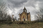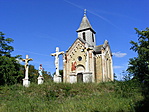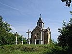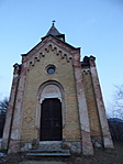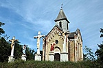 A görög kereszt alaprajzú, neoromán kápolna igénytelen, nyerstégla falazású, de tetszetős épület. Háromszögben végződő egyforma homlokzatuk oromzatán gúlasisakos négyezeti torony ül. A magas, keskeny, osztott ablakok félkörívben végződnek. A főhomlokzati oromzat közepén mélyített keretezésű ökörszem ablak. Az alatta lévő egyenes záródású kaput lunettában végződő, bimbós díszítésű keret fogja közre. A lunetta valamikori festményéből ma csak színtöredékek vehetők ki. Az ajtó gerendázatán az építkezés idejét (1900) római számokkal jelezték.