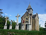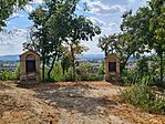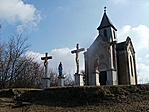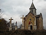 A kápolnához vezető tizennégy stáció terméskő alapon nyugvó téglafülke, lunettában végződik, ebben kis tábla a keresztút aktuális számával. A négyszögű mezőben vasháló és üveg mögött a keresztút jeleneteit ábrázoló, mozgalmas, életszerű, festett szobrok.