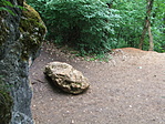 Kár, hogy az utóbbi megtalálók egyike sem említette, hogy a dobozt nem a nagy, hanem a kis szikla alatt találta meg. Így mi igen sokáig kerestük. Én már majdnem feladtam, amikor végre előbukkant Péter60 szemfülességének és kitartásának köszönhetően. Mi a leírásnak és a koordinátáknak megfelelő nagy szikla alá rejtettük vissza, ahol világosan látszott a helye is.