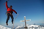Másnap kora reggel indultunk, és a Defregger házig viszonylag rövid idő alatt bő 800 m szintkülönbséget emelkedtünk. Itt egyórás pihenő következett. Mindent a házban hagytunk, amit a csúcstámadáshoz feleslegesnek ítéltünk. Kb. 3150 méteren kellett felcsatolnunk a hágóvasakat, továbbá összekötöttük magunkat, és így két négyfős kötélpartit alkottunk. Az idővel nagy szerencsénk volt: szikrázó napsütésben hódítottuk meg a csúcsot. A fokozatosan jelentkező légszomjon és az ezzel járó enyhe fejfájáson kívül más nem nehezítette a feljutást. (A csúcs előtti cipőnyi széles nyereg azért lábat remegtető...) Számomra magassági rekord volt az új mérések szerinti 3674 méter. Lefele menet déli irányban szépen kirajzolódtak a Dolomitok jellegzetes csúcsai, és korábbi kalandos mászásaink helyszínei: a Tofanák.