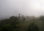 Most egész napos eső után a kápolnától sétáltunk fel. Köd, felhő, napsütés. Szép hely.