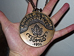 Hát igen. A dobozka komoly küzdelem nélkül nem adta meg magát. Kilátóval, büfével együtt két és fél óránkba került. Hiába, a magunk szabta szabályokat nem tartottuk be, és nem léptük ki a kilátótól a távolságot, csak szemmértékre, így előbb fordultunk be a túristaútról, és mint utólag kiderült kb 5 méterrel a rejtek felett keresgéltünk. Mentségünkre legyen hozva, a csalán már combközépig ér, és a natural-tracket is teljesen benőtte. Mire a párom megtalálta, megismerkedett a Somló összes fatörzsével, én meg a csalánba tapostam új utakat (legalább nem lesz reumám).