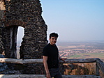 TE ATYAÚRISTEN! Valami eszméletlenül hihetetlenül zseniális ez a vár. Olyan kilátás van, hogy az agyam eldobtam és állat jól néz ki a rom is. Zseniális az egész hely. Szerencsétlenség volt az egészben, hogy a várnál lévő pont nem volt meg, Fairy pedig nem volt elérhető, így logolni nem tudtam. Visszamentem amerre jöttem, fel a csúcsra, onnan le - sajnos nem volt nyitva a kilátó, de a keresztet meg minden egyebet megnéztem -, nagy nehezen 50 fokban visszaérek a kocsihoz meg anyukámhoz és a nagyszüleimhez, mire közlik, HOGY NINCS MEG A SLUSSZKULCS!!! Nem is értettem meg nem is akartam elhinni, soha az életben nem hagytunk még el slusszkulcsot, de tényleg ott álldogáltak a kápolna árnyékában, szóval nem vicceltek, tényleg elhagyták. Azt hittem, rosszul leszek. A Somló-hegyről visszajutni a györöki apartmanunkba tömegközlekedve nagyjából egy nap lett volna, meg még egy vissza, de addig meg hol maradjanak anyámék? Borzasztó volt a helyzet. Ja és akkor erre még közölték, hogy anyám óriásit esett és lezúzta a kezét meg a lábát annál a pincénél a lépcsőn, ami mellett fel kellett menni a hegyre (ott pihentek, amíg én másztam). Fantasztikus helyzet, anyám összetörve, slusszkulcs nincs és kb. tényleg 50 fok volt, irgalmatlanul tűzött a Nap. Nem volt mit tenni, visszamásztam a pincéhez meg a napernyős asztalokhoz, ahol anyámék pihentek, hátha ott hagyták. Már ahogy érkeztem, láttam, hogy nincs ott semmi, legalábbis az asztalokon. Végül ahogy mentem le a lépcsőn, amin anyám leesett, megcsillant valami a lépcső oldalán, egy adag gaz alatt. Lehajoltam és a slusszkulcs volt az. Annyira ideges voltam, hogy nem is mentem le egyből, leültem az egyik asztalhoz aztán megbontottam és megittam egy nálam levő Panachét. Ezután diadalmasan visszamentem a kocsihoz, a slusszkulccsal és így mehettünk tovább a dolgunkra. De a Somló nem engedett el minket ennyivel...