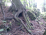 Kellemes séta a kápolnától. Szerencse, hogy a hegy szélvédett oldalán vezetett az út, fent a tetőn és a láda körül viharos szél süvített. A rejtek környékén majdnem minden fának odvas az alja, de aztán Zsuzsi kiszúrta a dobozt jó 10m-ről... :)