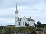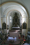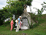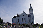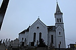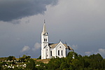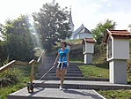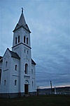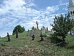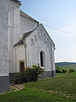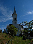 A nap (de micsoda nap!) utolsó találata. Kis kitérő hazafelé menet. Azt már rutinból elviseltük, hogy szombat este (!) is folyt egy híd felújítás a falu előtt. Kis várakozás után azért továbbmentünk és felkereshettük ezt a templomot. A helybéliek közül néhányan szép ruhában éppen felfelé igyekeztek a lépcsőn, amikor amolyan "kesser ruhában" mi is csatlakoztunk a felfelé bandukolókhoz.