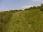 elágazásnál nekiestem a szántóföldnek. Az erdőig lehetett még szenvedni a kerékpáron, 400 m-nél elrejtettem a bicót. Felmásztam a ládáig, kiláttam a starthelyen, visszajöttem a kerékpár rejtekhez, legurultam a hegyről, aztán kezdtem a mai 1. edzésszakaszt Pásztóra, GCPASZ felé.