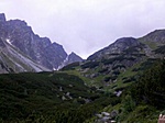 jelzés pedig tovább halad a hegyoldalban. Tegyünk mi is így! Nemsokára kiérünk az erdőből, és elénk tárul jobb oldalon a Menguszfalvi-völgy (Mengusovská dolina) alsó szakasza és a túloldalon az Oszterva (Ostrva, 1979 m) tömbje. itt egy darabig a hegy oldalában haladunk, kövekkel kirakott úton, balra sziklafal, jobbra meredély. Az út nemsokára levisz a völgybe, ahol egy kis fahídon átkelünk a Hincó-patakon (Hincov potok), és egy rövid emelkedő után megérkezünk a Poprádi-tóhoz (Popradské pleso, 1495 m). A tó partján van a Poprádi-tavi menedékház (Chata Popradské pleso), szálláslehetőséggel, büfével, étteremmel (idáig megfelelő engedély birtokában autóval is fel lehet jönni).