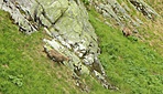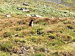 -on mentünk, ami már ismerős volt a RYSY-re menet. A tömeg ma is a Rysy felé tartott, így az elágazás után sokáig egyedül bandukoltunk. Nagyon jó érzés volt, hogy csak mi vagyunk és a nagy csend. A Hincó-katlannál már találkoztunk néhány emberrel, de sokkal kevesebbel, mint azt vártuk. Később egy fotogén zerge, mint egy forgalomszámláló nézett le egy magaslatról. Nem mozdult el csak nézte a felfelé vonuló embereket. Ekkor már nagyon gyilkos volt a meleg. 11 óra előtt értünk fel a csúcsra és a meleg nem nagyon csökkent. Csak néhányan előztek meg. Lefelé próbáltam a dobozt elővarázsolni valamelyik résből, de nem sikerült. Találtam helyette kék Marlborós dobozt, sörös dobozt.
