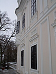 A díszteremben lévő falképekre gróf Teleki József adott megbízást. A képeket egy ismeretlen sziráki festő festette egy XVII. századi német mester, Johann Wilhelm Baum metszetsorozata alapján. Itt a gazdag látszatarchitektúrával tagolt falmezőkben hat grisaille technikával festett (jelen esetben zöld szín árnyalatával játszik) figurális jelenet Ovidius Metamorphosisának egy-egy epizódját ábrázolja. A hat jelenet a terem északi, déli és nyugati falán látható. A keleti falat ornamentális festés, váza és virágfüzér díszíti.