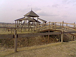 Nagykáta - Tóalmás - Jászdózsa - Jászberény útvonalon érkeztem kerékpárral eleinte szakadó esőben, majd az utolsó 40 km-en totális pofaszélben. A GPS térképen szilárd burkolatú út, amely Nagykáta határától Tápiószentmártonig vezet, sajnos csak az első tanyáig szilárd burkolatú, utána GCNAGY-hoz hasonlóan jellegzetes merülős alföldi mély homok. Viszont így egy legelésző ló csapat mellett egyensúlyoztam el, majd a pásztor szerinti igen rozoga hídon (ld. fénykép) átkelve érkeztem a faluba. A dombhoz közeledve a kerítés irányából keserves sírás hallatszott (nem a magas belépőjegy ára miatt sírt valaki): két kutya elkapott egy fiatal nyuszit, és a még élő állatot a nyakánál és a hátsó lábánál húzva civakodtak, hogy melyiküké legyen. A portás szétkergette a kutyákat, ott maradt a még élő nyuszi. Később, amikor lejöttem a dombról, már nem volt ott, ezek szerint valahogy megmenekült. Sokáig ott csengett a fülemben a nyuszi keserves sírása.
