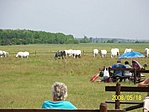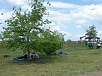 A dombra felmenet a GPS rendesen működött, viszonylag egyszerűen meg lehetett számlálni a tuskókat is. Összesen egy idős pár ücsörgött a kijelölt helyen valamilyen gyógyulást remélve. Ki tudja, hogyan jó ez: kiépíteni egy dombot idegenforgalmi látványossággá és pénzt szedni, ami fellendíti a környéket, vagy hagyni a természetet működni úgy, ahogyan azelőtt működött. Az utóbbi esetben biztosan lecsap a területre egy élelmes újgazdag, és akkor lehet, hogy még rosszabb a helyzet. Sehogy sem jó... Mindenesetre a lovak mögött lenyugvó alföldi Napot nem veszi meg senki, abban békésen lehet gyönyörködni. :o)