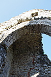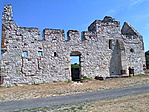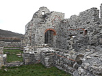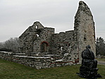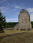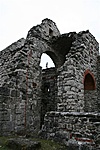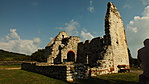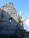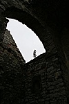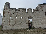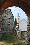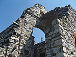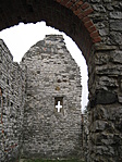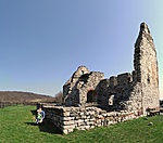 Dörgicsére a sok fel-le hullámvasút, a döglesztő emelkedők, a kanyarok miatt kifékezendő lejtők után értem. A templomrom már az utolsó emelkedőn látszott.