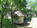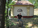 Szeged-Debrecen kerékpártúra 3. napja. Ameddig lehetett eljutottam a kerékpárral, de a patakon már nem tudtam átkelni vele. A kápolna környéke szépen rendezett. A ládát a kápolna lépcsőjén találtam meg. Elrejtettem a GPS által mutatott eredeti hely környékére (~ 1,5 m)